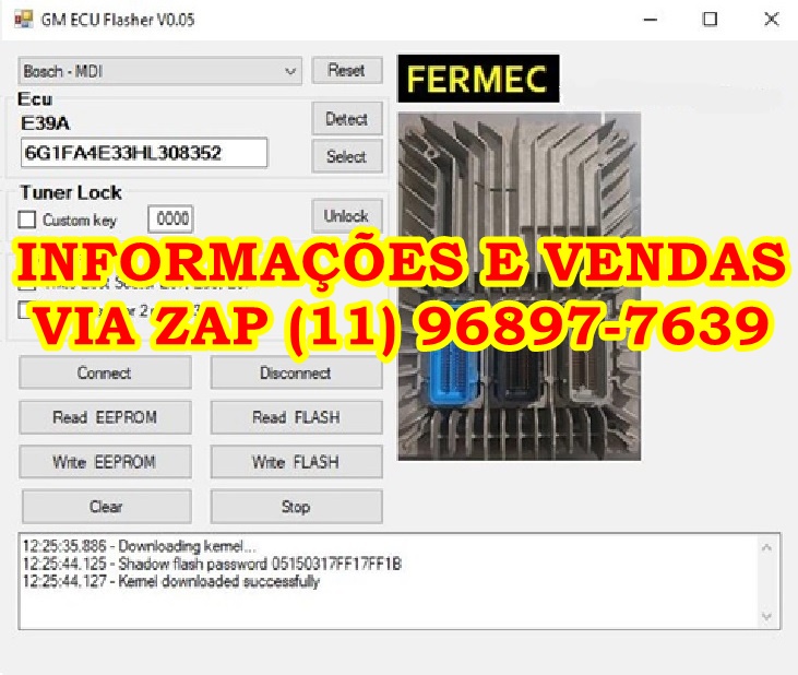 COMPATIBILIDADE ECU GM: E37, E38, E39, E39A, E67, E78, E83, E92, E98 e SIMTEC 76.1 Permite leitura, escrita e desbloqueio de FLASH e EEPROM.