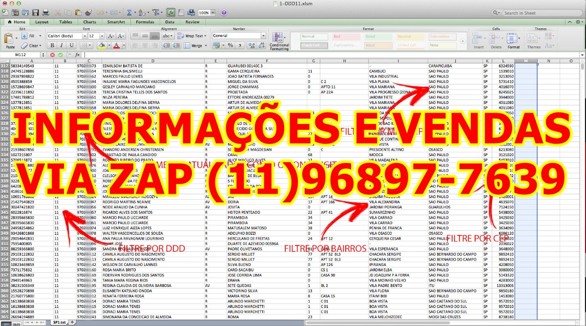 A lista toda está em formato excel Contendo os dados: cpf, fone,